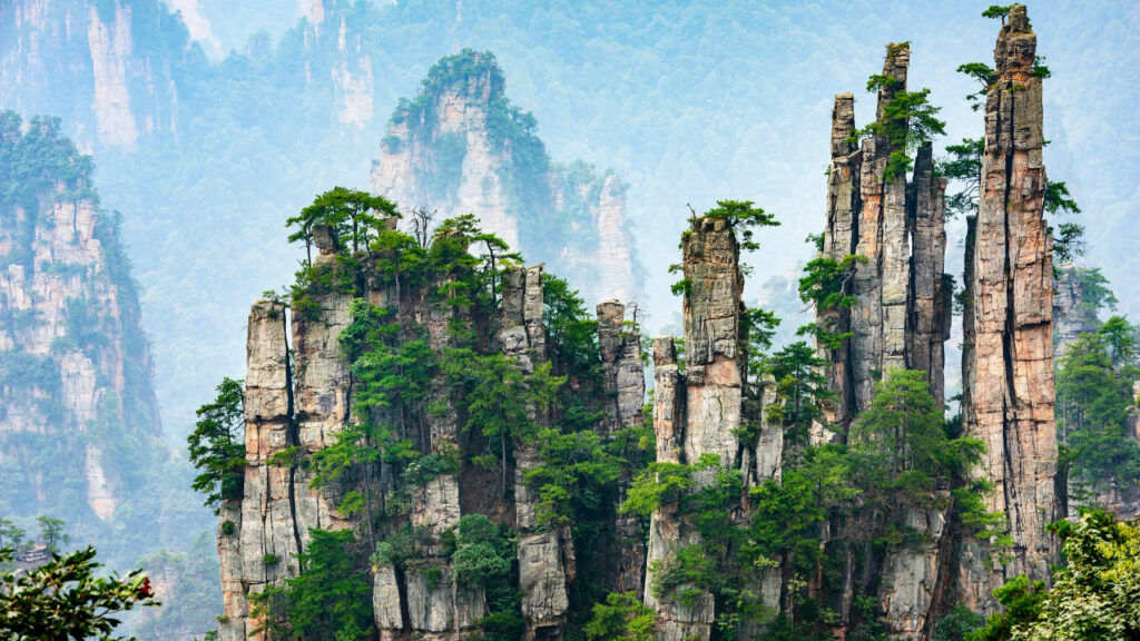 In southern China’s Hunan Province, towering stone pillars rise through the mist like ancient guardians. These surreal landscapes of Zhangjiajie National Forest Park inspired the floating Hallelujah Mountains in James Cameron’s Avatar. Covered in lush greenery and wrapped in ethereal fog, these quartz-sandstone formations create a world that feels entirely otherworldly.